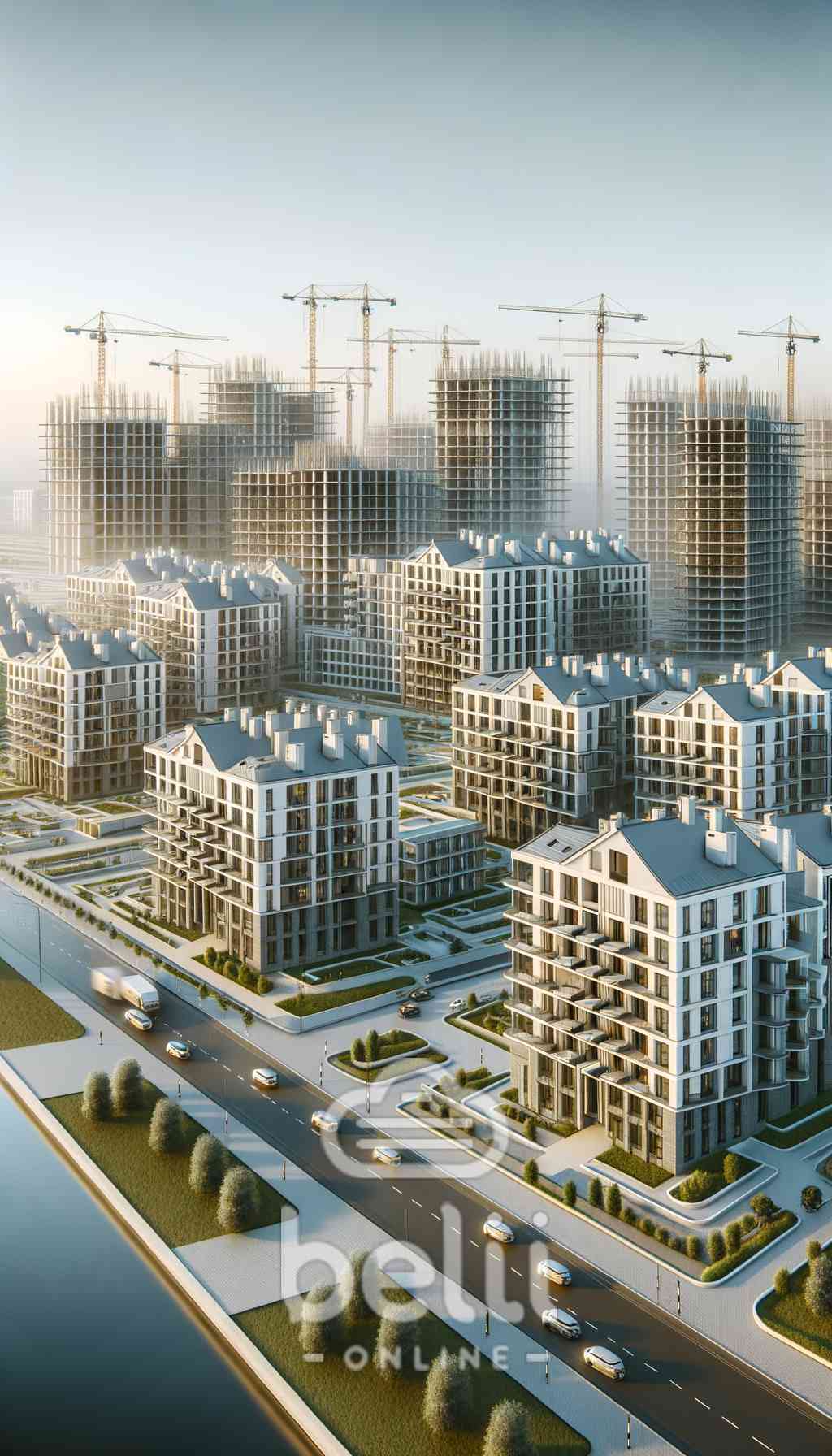 Создай изображение строящихся домов в новом микрорайоне